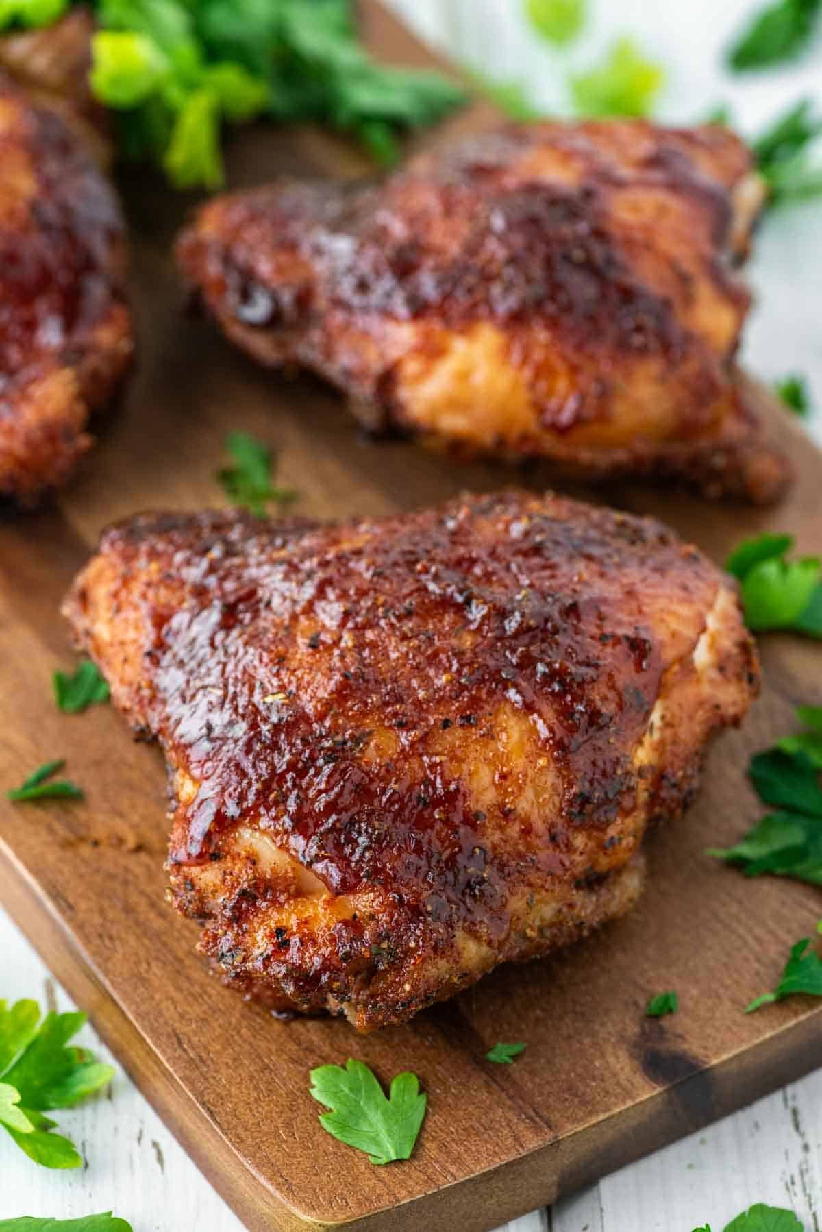 Chicken thigh that’s been slow smoked for 5 hours and smothered with a sweet and tangy BBQ sauce.